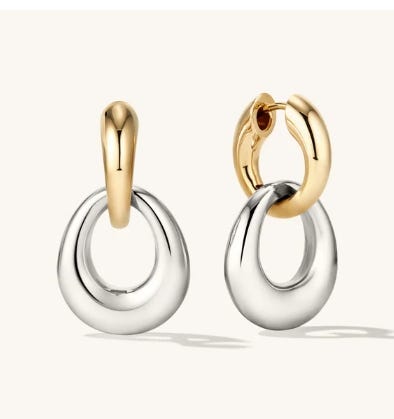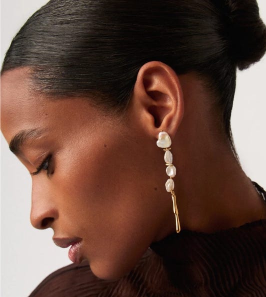 Investment: Mejuri JoJo Convertible Hoops ($198) *love the two tone of gold & silver & absolutely love these: Missoma Keshi Pearl Sculptural Drop Earrings ($265)